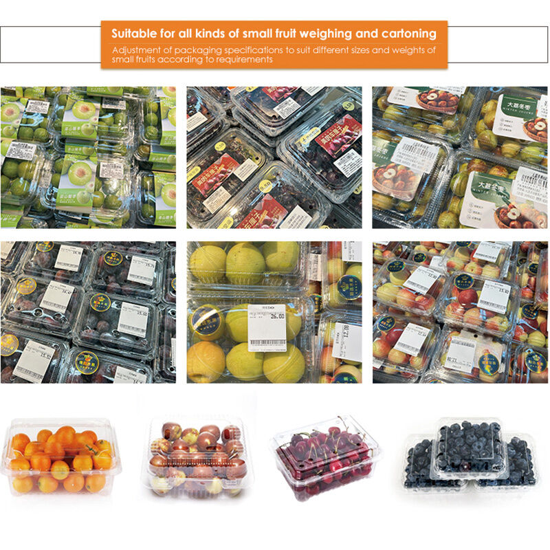 Kami Lini Pengemasan dan Penimbangan Kerang Buah Otomatis dirancang khusus untuk mengemas buah-buahan kecil seperti blueberry, anggur, ceri, stroberi, kurma, dan buah campuran ke dalam wadah kerang PET dengan akurasi tinggi dan penanganan yang lembut.